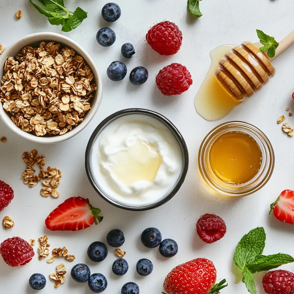The main ingredients for the Berry Yogurt Parfait are simple yet packed with flavor. Greek yogurt gives a creamy base. You can choose plain or vanilla based on your taste. Granola adds a crunchy layer. I like to use a blend that I love. Mixed berries bring a pop of color and sweetness. Blueberries, strawberries, and raspberries work best together.