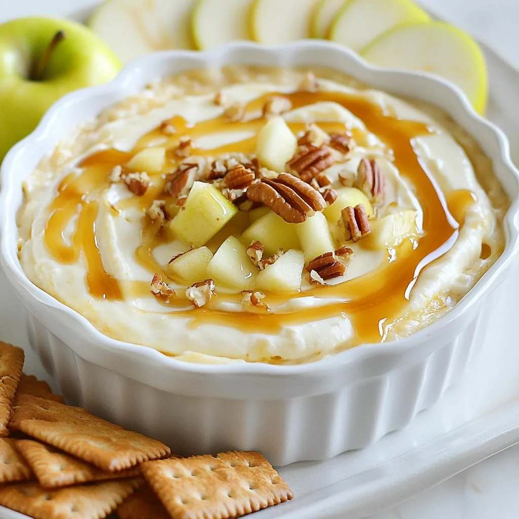 A creamy and delicious dip featuring the flavors of caramel and apple, perfect for dipping with graham crackers and fresh apple slices.