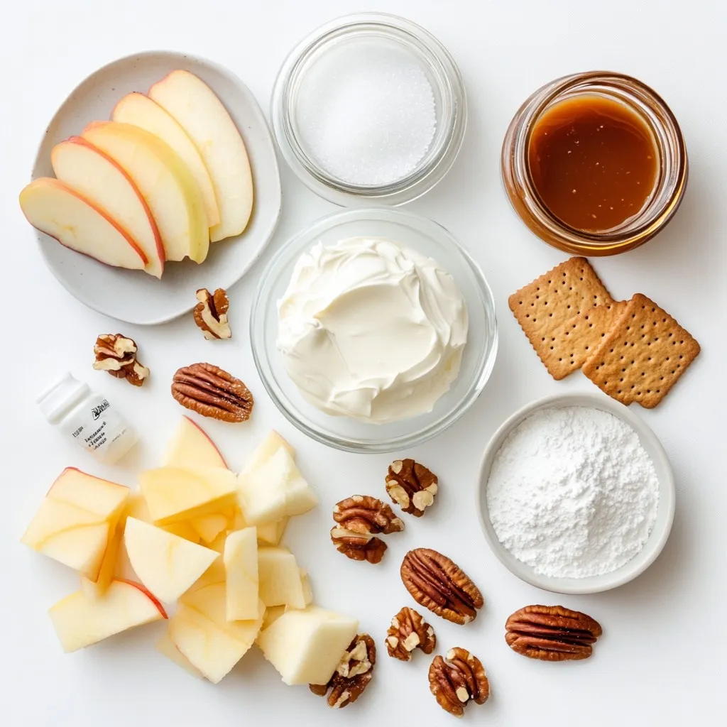 Now, for the star of the show: 1/2 cup of caramel sauce. Set aside a bit for drizzling later. Then, chop 1/2 cup of pecans finely. These will add crunch to your dip. Finally, don’t forget a pinch of sea salt. This little touch balances the sweetness perfectly.