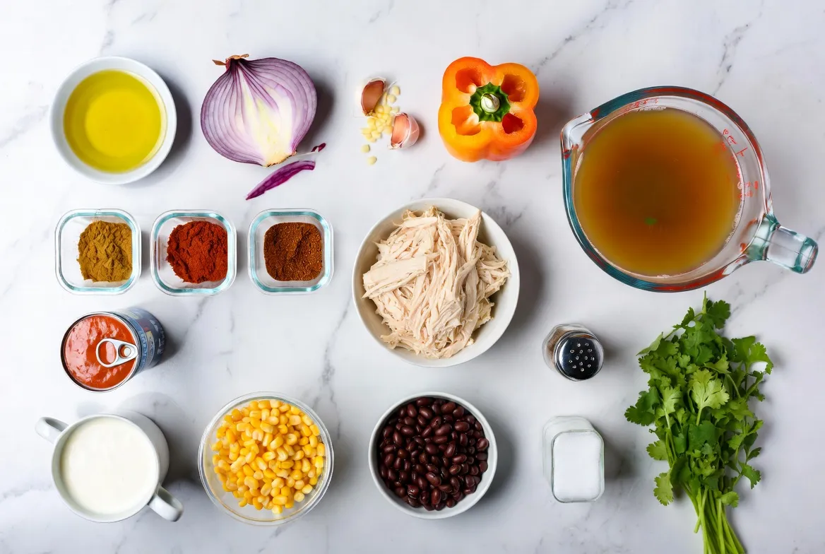 These core ingredients create a rich base for your soup. Olive oil helps sauté the onion and garlic, bringing out their flavors. The onion adds sweetness, while garlic gives a nice depth. The bell pepper adds crunch and color. Cumin, paprika, and chili powder give warmth and spice. Chicken broth ties it all together, making it comforting and hearty. The shredded chicken adds protein and texture, making your soup filling.