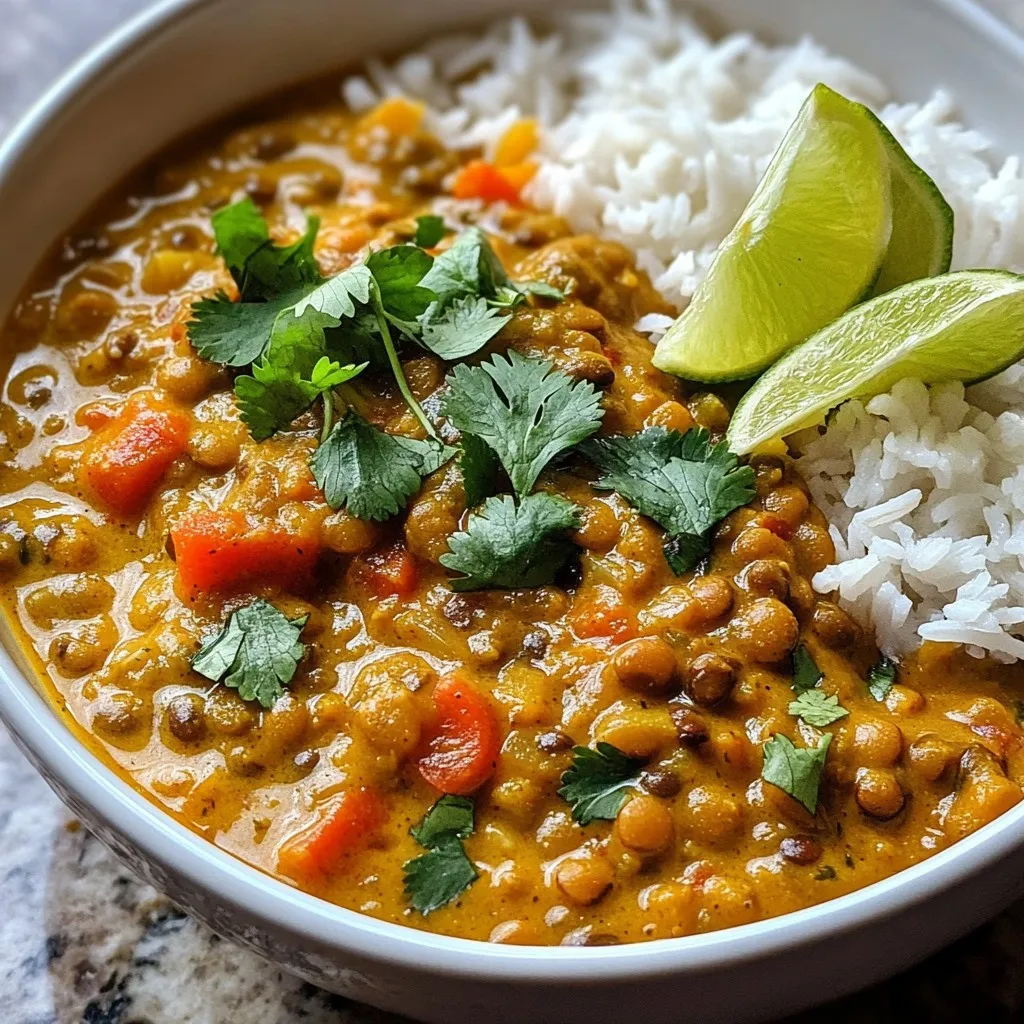 A rich and flavorful lentil curry made with coconut milk and vibrant vegetables.