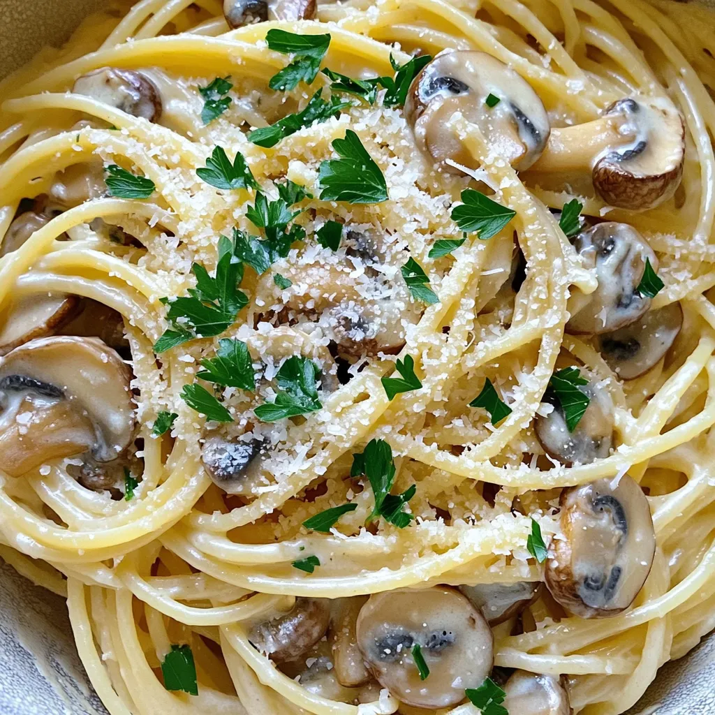 Remove the skillet from heat. Serve the pasta immediately. Garnish with chopped fresh parsley and a shower of grated Parmesan cheese for a delightful finish. For an elegant touch, consider drizzling a bit of high-quality olive oil over the dish before serving. Enjoy your creamy garlic mushroom pasta!