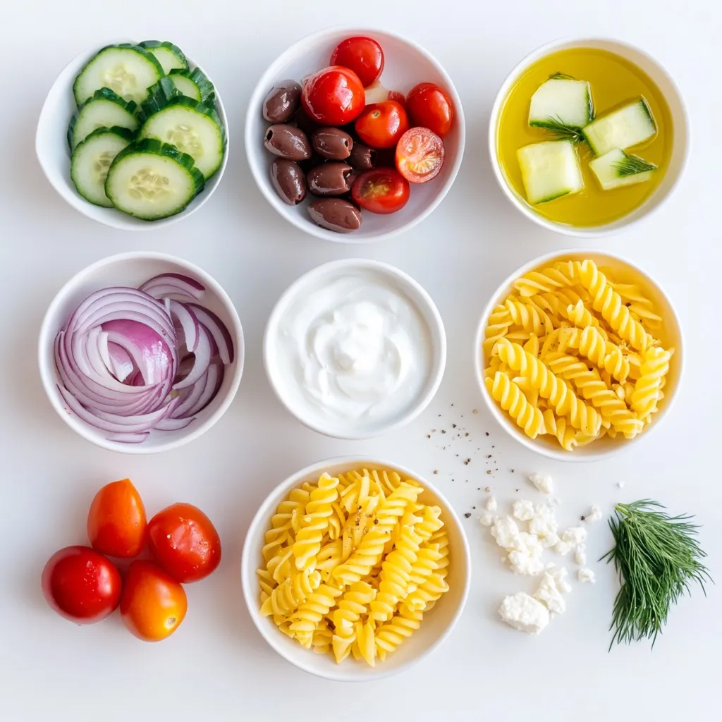 Essential Ingredients for Creamy Greek Tzatziki Pasta Salad