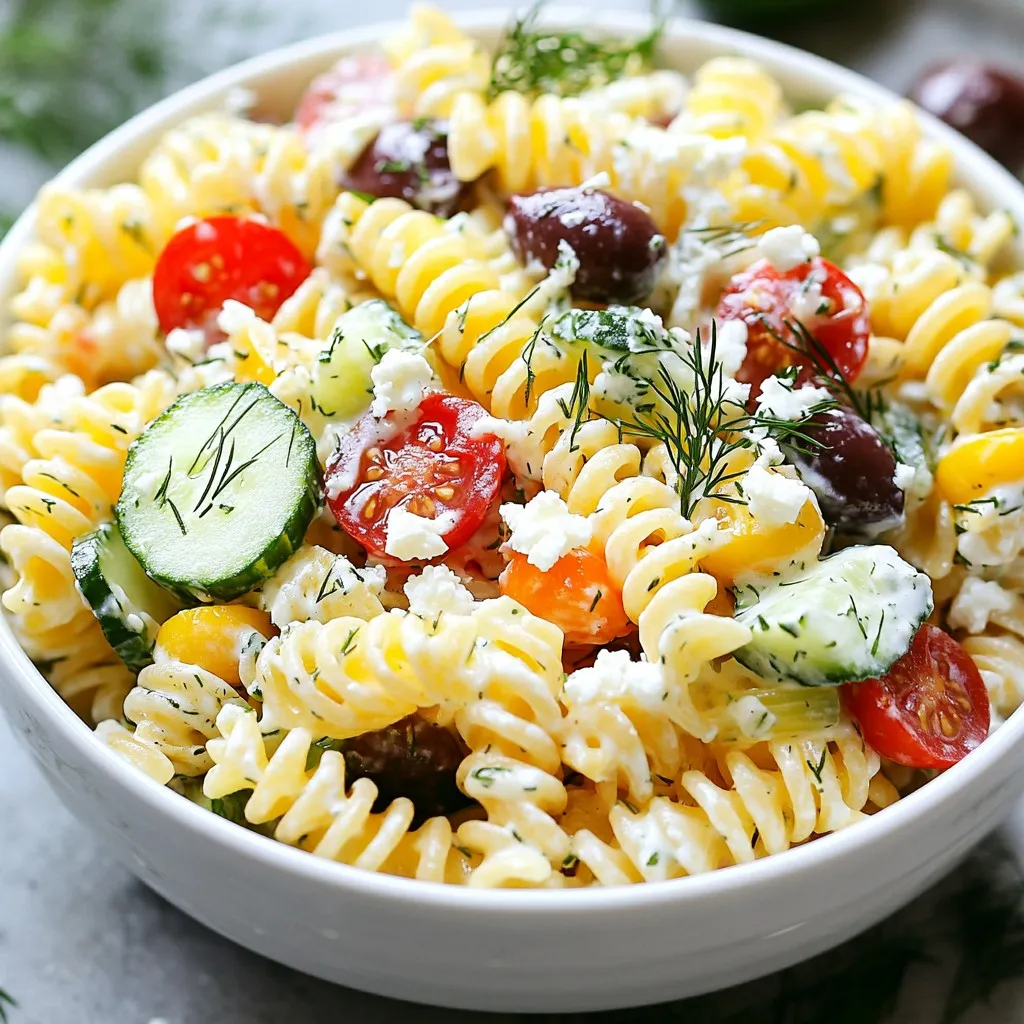 A refreshing pasta salad with a creamy tzatziki dressing, perfect for warm weather.