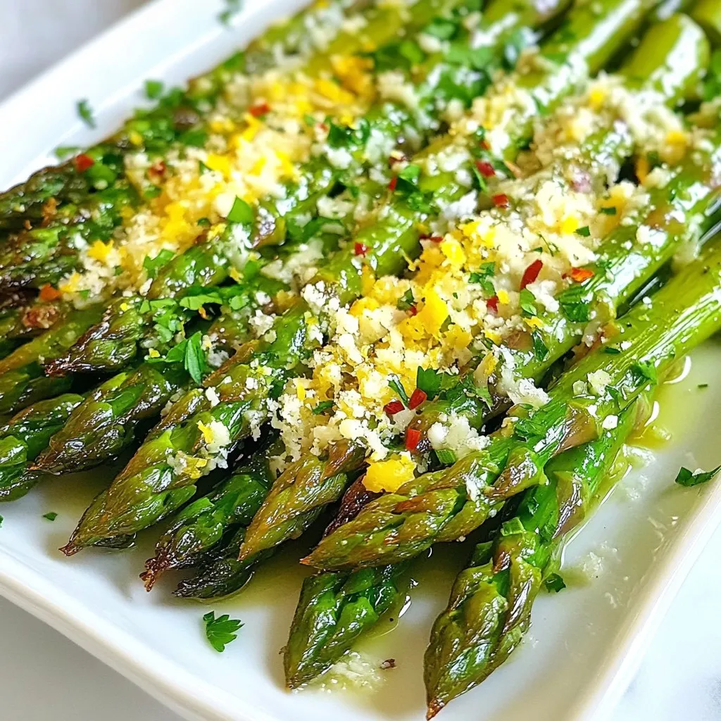 Arrange the asparagus neatly on a serving platter and drizzle with a little extra olive oil or a sprinkle of lemon zest for added flair before serving.