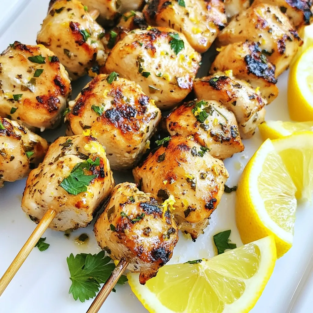 Delicious marinated chicken skewers with a zesty lemon flavor.