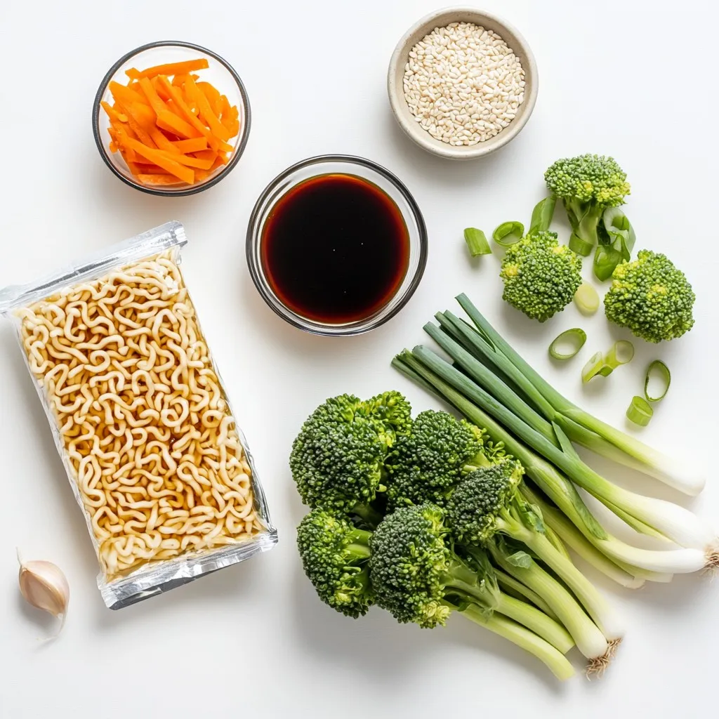 For this honey garlic instant ramen hack, you need simple ingredients. Start with two packs of instant ramen noodles. You can choose any flavor you like. Next, gather three tablespoons of honey, two tablespoons of soy sauce, and one tablespoon of sesame oil.