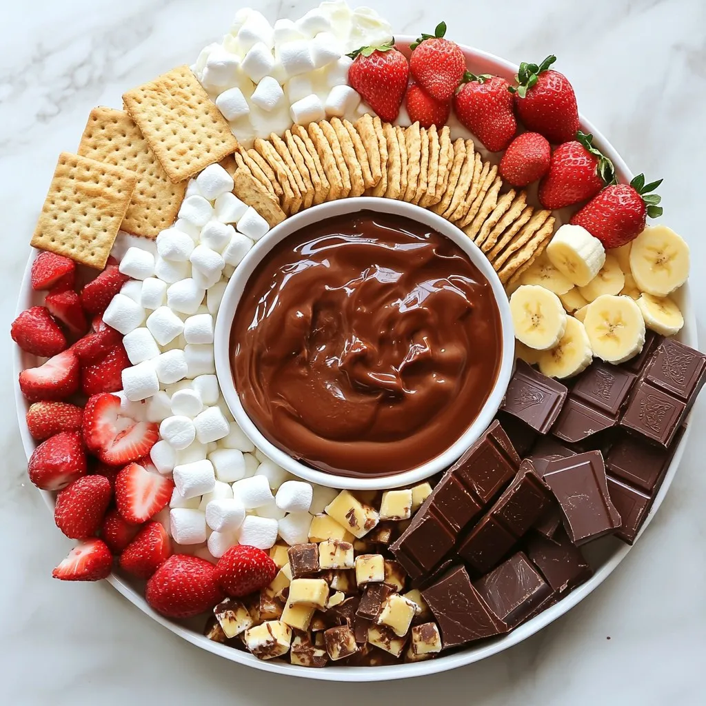A stunning board needs good color coordination. Use bright fruits like strawberries and bananas next to dark chocolates. This adds visual appeal and invites guests to dig in. Choose decorative serving ware to enhance your setup. A charming bowl for hot chocolate makes it feel special. Small bowls for toppings can look cute and organized.
