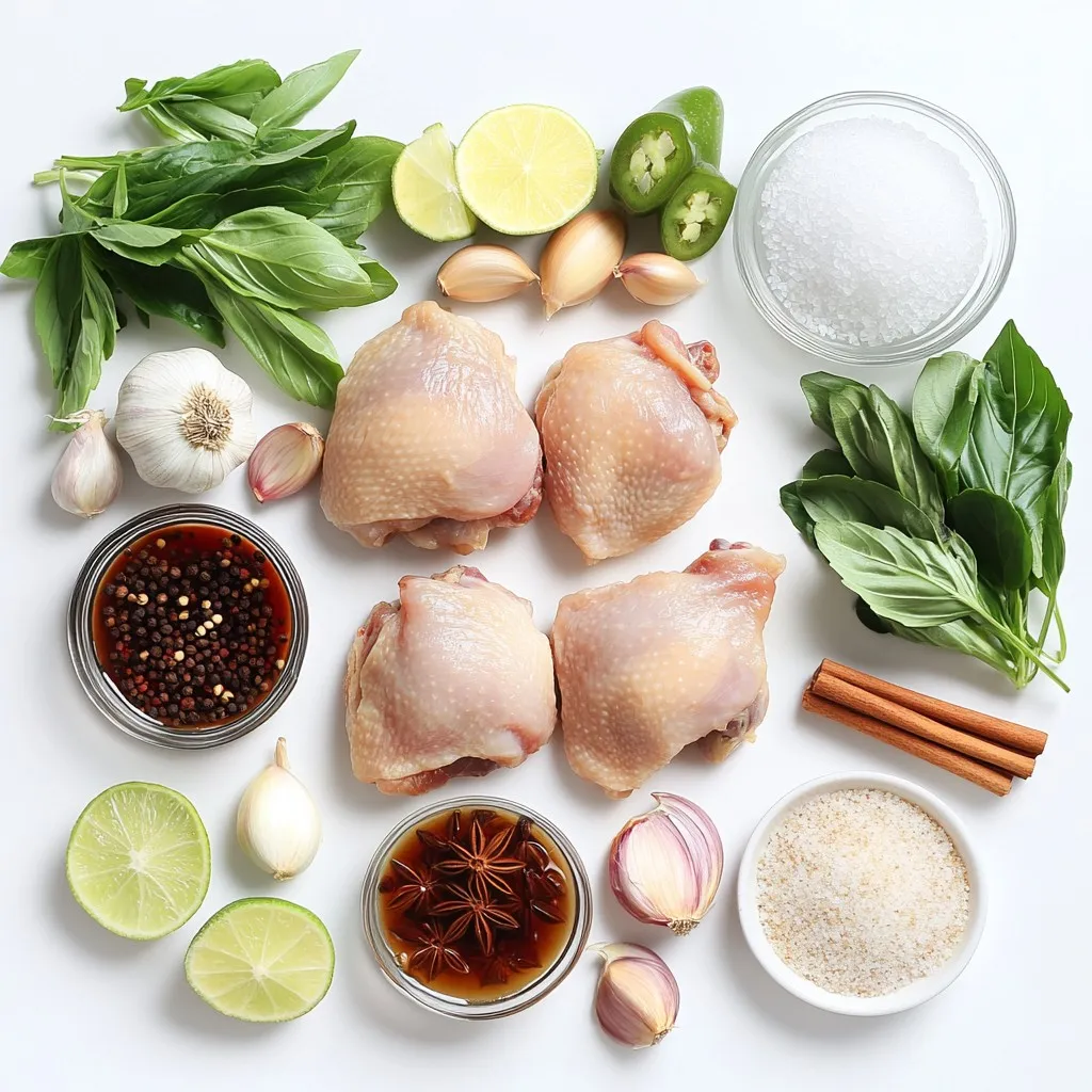 The main ingredients are the heart of your pho. Skinless chicken thighs add rich flavor and moisture. Using chicken broth instead of water gives depth to your soup. The onion, garlic, and ginger create a strong base. They fill your kitchen with warm, inviting scents.