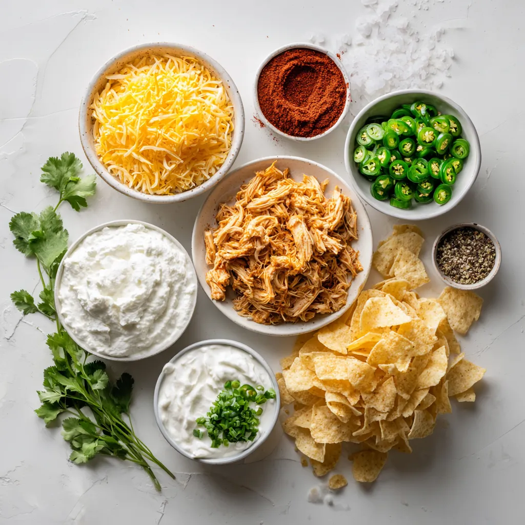 For this zesty jalapeño cheesy chicken bake, you'll need: - 2 cups cooked chicken, shredded - 1 cup cream cheese, softened - 1 cup sharp shredded cheddar cheese - 1/2 cup diced jalapeños - 1/2 cup sour cream - 1 teaspoon garlic powder - 1 teaspoon onion powder - 1 teaspoon smoked paprika - Salt and pepper, to taste - 1 cup crushed tortilla chips - Optional: Fresh cilantro leaves, for garnish You can switch out some ingredients if needed. - Use rotisserie chicken for more flavor. - Swap cream cheese for Greek yogurt for a lighter option. - Choose pepper jack cheese to add extra spice. - Instead of fresh jalapeños, use pickled ones for added tang. - Use crushed cornflakes if you don't have tortilla chips. When selecting your ingredients, freshness matters. - Look for bright green jalapeños with no blemishes. - Choose cream cheese that feels soft and spreadable. - Opt for sharp cheddar for a stronger cheese flavor. - If possible, grab organic chicken for a better taste. - Check expiration dates on dairy products to ensure freshness. {{ingredient_image_2}} First, set your oven to 375°F (190°C). This helps cook the dish evenly. While the oven heats, grab a 9x13 inch baking dish. Lightly grease it with cooking spray or butter. This step keeps the bake from sticking. In a large mixing bowl, combine the following: - 2 cups cooked chicken, shredded - 1 cup cream cheese, softened - 1 cup sharp shredded cheddar cheese - 1/2 cup diced jalapeños - 1/2 cup sour cream - 1 teaspoon garlic powder - 1 teaspoon onion powder - 1 teaspoon smoked paprika - Salt and pepper to taste Use a fork or spatula to mix until it's creamy and well-blended. Make sure all the ingredients are combined. Now, transfer the creamy chicken mixture into your greased baking dish. Spread it out evenly. Next, sprinkle 1 cup of crushed tortilla chips over the top. Cover the mixture well to add crunch. Place the baking dish in your preheated oven. Bake for 25-30 minutes. Look for bubbling edges and a golden brown topping. When it’s done, remove it from the oven and let it cool for about 5 minutes. This cooling helps the flavors settle. If you want, add fresh cilantro for a burst of color. Enjoy your Jalapeño Chicken Bake! To keep your dish creamy, use softened cream cheese. Let it sit out for a bit. Mix it well with the chicken and cheeses. This helps everything blend smoothly. Adding sour cream also boosts the creaminess. It adds a nice tang too. If you want more flavor, try using rotisserie chicken. It adds depth and taste. You can control the heat of your bake with jalapeños. Use fresh jalapeños for crunchy bites. If you want it milder, remove the seeds. For more heat, add more jalapeños. Pickled jalapeños give a tangy twist. They can be just as spicy. Always taste your mix before baking. This way, you can adjust to your liking. To get that perfect crunch, use crushed tortilla chips. Spread them evenly over the top. This helps create a nice, golden crust. If you want extra flavor, mix the chips with a little melted butter. You can also add spices, like paprika, to the chips. This gives a tasty kick. Remember, the crunch will soften if left too long, so serve right away! Pro Tips Use Quality Chicken: Opt for rotisserie chicken for added flavor and convenience. It saves time and enhances the overall taste of the dish. Adjust Heat Level: Depending on your preference, you can modify the amount of jalapeños used. Remove the seeds for a milder flavor or add more for extra heat! Cheese Variations: Experiment with different types of cheese like pepper jack or Monterey Jack for a unique twist and added creaminess. Crunchy Topping: To achieve the best crunch, add the crushed tortilla chips just before baking to prevent them from getting soggy. {{image_4}} You can make a tasty vegetarian version of this dish. Replace the chicken with beans. Black beans or pinto beans work well. Use about two cups of cooked beans. Mix these with cream cheese, cheese, jalapeños, and spices. This swap keeps the dish creamy and full of flavor. Plus, it adds protein and fiber. If you love heat, add more jalapeños. You can use fresh or pickled ones. Adjust the amount to your liking. Try using up to one cup of diced jalapeños. This change will give your dish a vibrant kick. Pair this with a cooling side, like sour cream or avocado, to balance the spice. Switching up the cheese can change the flavor. You can use pepper jack for a spicy twist. Mozzarella will make it gooey and mild. For a sharper taste, try gouda or feta. Mix and match cheeses to create your own unique flavor profile. Each type of cheese adds a different layer of taste to your bake. After your Jalapeño Chicken Bake cools, place it in an airtight container. Make sure to cover it well to keep it fresh. Store your leftovers in the fridge. They will last for about three to four days. If you want to keep it longer, consider freezing it. To reheat, preheat your oven to 350°F (175°C). Place the chicken bake in an oven-safe dish. Cover it with foil to prevent it from drying out. Heat for about 20 minutes or until it’s warm throughout. You can also microwave individual portions for about two to three minutes. Just make sure to check if it’s hot in the center. If you want to freeze your Jalapeño Chicken Bake, let it cool completely first. Use a freezer-safe container or wrap it tightly in plastic wrap and then foil. Label it with the date. It can stay in the freezer for up to three months. When you're ready to eat, thaw it in the fridge overnight before reheating. This way, you keep the flavors intact and enjoy it just as much as the first time! Yes, you can! You can use rotisserie chicken for flavor. Shredded cooked chicken breast or thighs works well too. You can even use canned chicken in a pinch. Just make sure the chicken is cooked before you mix it. To make it milder, reduce the jalapeños. You can use fewer diced jalapeños or switch to pickled jalapeños. For extra creaminess, 