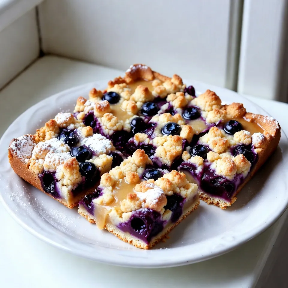 Slice the bars into neat squares and arrange them on a decorative platter. Dust with powdered sugar for a delightful touch, and consider garnishing with fresh blueberries and a few sprigs of mint leaves to elevate the presentation.