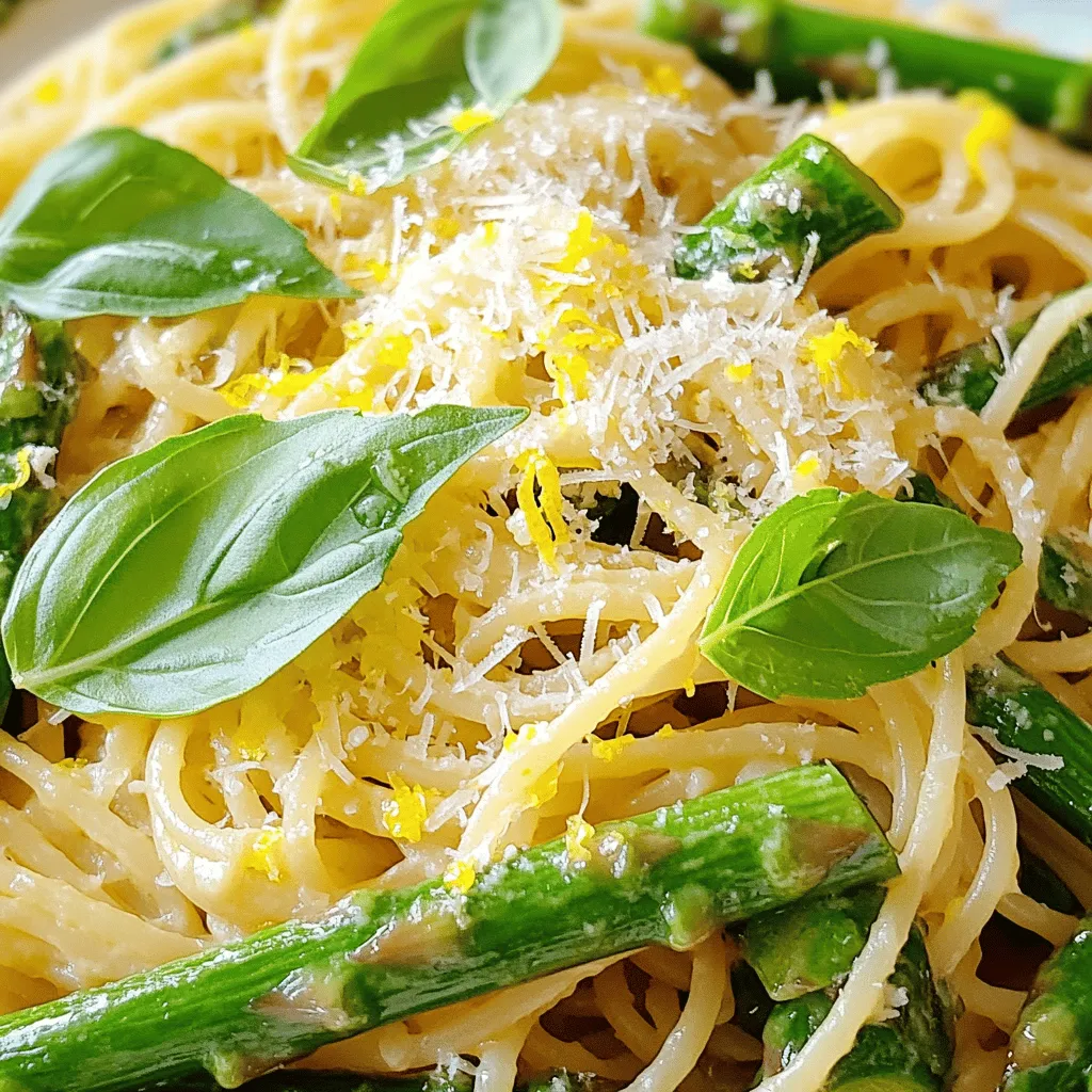 The main ingredients here are simple yet flavorful. Spaghetti or fettuccine serves as the base. Fresh asparagus adds crunch and nutrients. Garlic brings depth, while olive oil ties it all together.