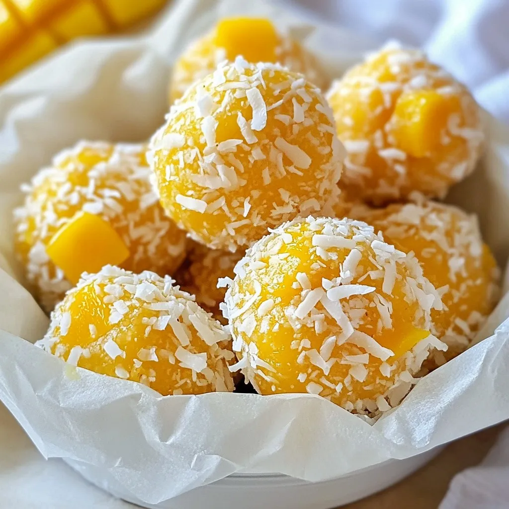 Delicious and nutritious energy bites made with dried mango, coconut, and oats.