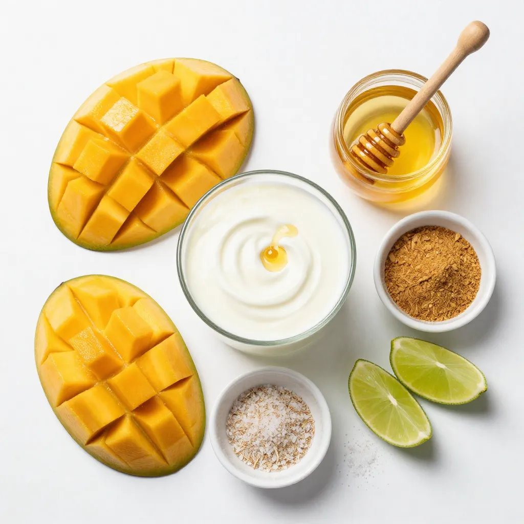 Step 1: Combine the diced mangoes, Greek yogurt, coconut milk, honey or maple syrup, ground cardamom, lime juice, and a pinch of salt in a blender.