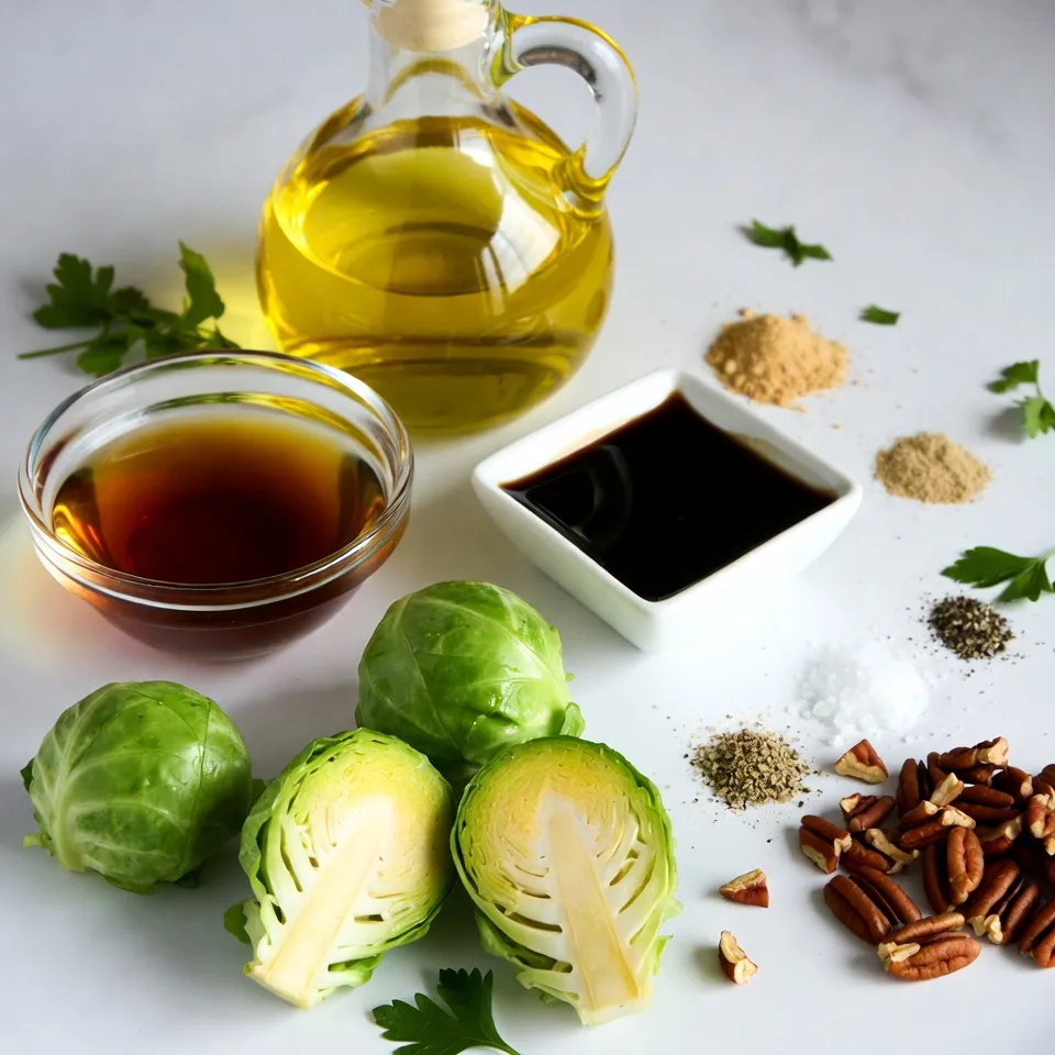 These ingredients make the dish pop with flavor. Fresh Brussels sprouts are the star. They should be bright green and firm. Olive oil adds richness while the maple syrup brings sweetness. Balsamic vinegar offers a nice tang. Garlic powder gives a warm note, while sea salt and black pepper enhance all flavors.