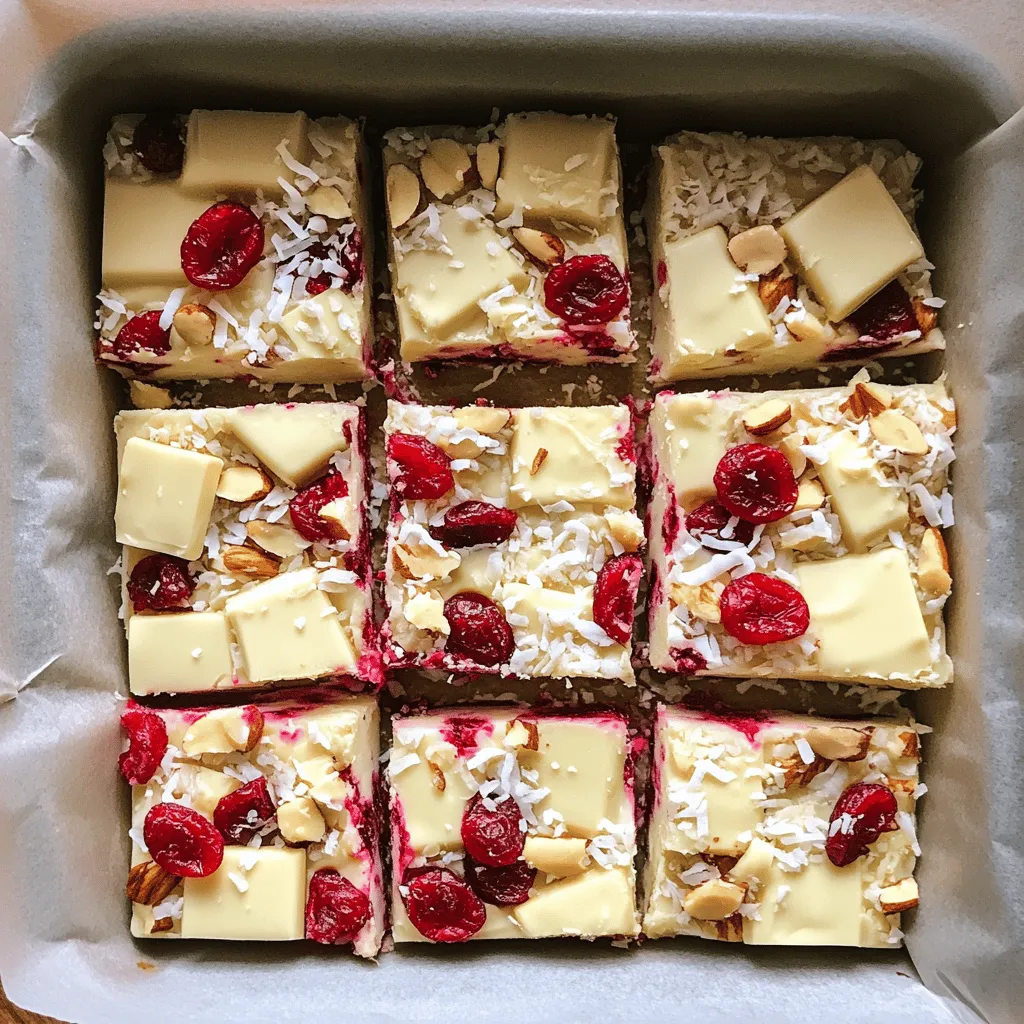 Gathering the right ingredients is key to making these bars tasty. The graham cracker crumbs give a nice base. The shredded coconut adds a fun texture. White chocolate chips provide sweetness and creaminess. Sweetened condensed milk brings it all together. Dried cranberries offer a tart bite. Chopped nuts add crunch and flavor. A pinch of salt enhances all the sweet notes.