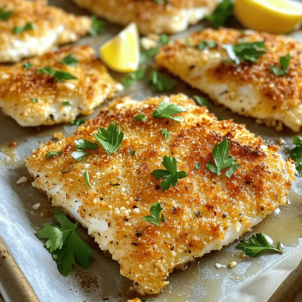 . To get that perfect crust on your Parmesan crusted tilapia, start by drying the fish. Use a paper towel to pat the fillets dry. This step helps the coating stick better during cooking. If the fish is wet, the crust can become soggy. Next, ensure you coat the fish evenly. After dipping the fillets in beaten eggs, press them into the Parmesan breadcrumb mixture. Cover both sides well. This way, you get a nice, crunchy texture when it bakes. When serving, think about what goes well with the fish. Steamed vegetables or a bright salad are great choices. They add color and nutrition to your meal. For plating, arrange the fillets on a nice platter. Add lemon wedges around the fish for a pop of color. A sprinkle of fresh parsley on top makes it look even better. One mistake is overcrowding the baking sheet. If you place too many fillets too close, they won’t cook evenly. Leave some space between each piece for hot air to flow. Another mistake is not preheating the oven. Make sure your oven is at 400°F (200°C) before placing the fish inside. This helps the crust get crispy and brown. For the full recipe, check the main section above. {{image_4}} To make your Parmesan crusted tilapia even tastier, try adding extra spices. Some great options include: - Cayenne pepper for heat - Italian seasoning for a herby taste - Onion powder for a savory kick You can also switch up the cheese. Instead of Parmesan, use: - Asiago for a sharper flavor - Mozzarella for a creamier texture - Cheddar for a rich taste If you need a gluten-free option, replace panko breadcrumbs with: - Crushed rice cereal - Almond flour These alternatives still give a nice crunch. If tilapia isn't your favorite, try using: - Cod for a mild taste - Salmon for a richer flavor - Chicken breast for a different protein Want to try a different cooking method? The air fryer is an excellent choice. Here’s how: 1. Preheat your air fryer to 400°F (200°C). 2. Cook the coated tilapia for about 10-12 minutes. 3. Check for a golden crust and flaky fish. For a pan-frying option, follow these steps: 1. Heat olive oil in a skillet over medium heat. 2. Fry each fillet for about 4-5 minutes on each side. 3. Look for a crispy crust and fully cooked fish. Explore my full recipe for more details on making this dish. Store any leftover Parmesan crusted tilapia in the fridge. Place the fish in a shallow, airtight container. This keeps it fresh and tasty. It is best to eat leftovers within two days. For best results, try to keep the crust intact. To reheat, use an oven or an air fryer. Preheat the oven to 350°F (175°C) and bake for about 10 minutes. This helps keep the crust crispy. In the air fryer, set it to 350°F (175°C) for about 5 minutes. Check that the fish is warmed through. Yes, you can freeze Parmesan crusted tilapia! Wrap each fillet tightly in plastic wrap. Then, place them in a freezer bag. This keeps them safe from freezer burn. To thaw, move the fish to the fridge overnight. You can also use a microwave on low power if you're in a hurry. For the full recipe, see above. Enjoy your tasty and simple dinner idea! Yes, you can use frozen tilapia. Just thaw it before cooking. To thaw, place the fish in the fridge overnight. If you need it faster, seal it in a bag and submerge it in cold water for about an hour. Make sure the fish is fully thawed. This helps the coating stick better. Look for a few signs to know if the fish is done. First, it should turn golden brown on the outside. Then, use a fork to check the fish. If it flakes easily, it’s ready. The flesh should be opaque, not translucent. An internal temperature of 145°F (63°C) means it’s safe to eat. Yes, this dish can be prepped ahead of time. You can coat the tilapia and keep it in the fridge for up to one day. Just cover it with plastic wrap. When you are ready, bake it as directed. If you want, you can also freeze the coated fillets. Thaw them overnight in the fridge before baking. This dish pairs well with many sides. Here are some great options: - Roasted vegetables: Carrots, asparagus, or broccoli. - Salads: A light green salad with lemon vinaigrette. - Rice or quinoa: Simple and filling options. - Potatoes: Mashed, baked, or roasted. - Drinks: A crisp white wine or sparkling water complements the fish. This blog post showed you how to make Parmesan crusted tilapia, focusing on ingredients, preparation, and tips. With simple steps, you can create a tasty dish that's crispy and satisfying. Remember to dry the fish well for the best crust. Whether you are cooking for family or friends, this recipe offers great flavors. Enjoy experimenting with variations and serving ideas. With practice, you’ll master this dish and impress everyone at the table. Cooking can be fun, so dive in and try it today!](https://magicinthedish.com/wp-content/uploads/2025/07/64276ab1-6b2f-4d14-8b32-0baa2a2d38a8.webp)