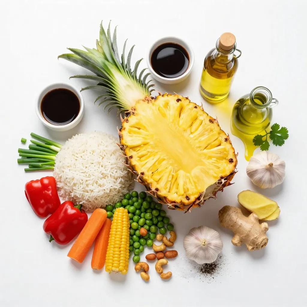 For seasonings, soy sauce is key. It brings savory notes that balance the sweetness of the pineapple. Sesame oil adds a nutty richness. Olive oil works well for sautéing. Adjust salt and pepper to suit your taste.