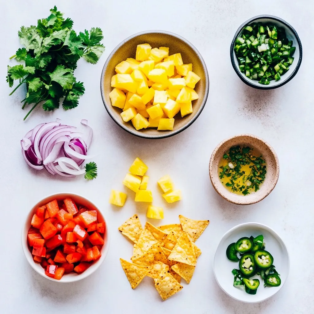 When you make Pineapple Salsa Chicken, fresh ingredients shine. First, choose high-quality chicken. Boneless and skinless works best for easy grilling. Next, pick a ripe pineapple. Diced into small pieces, it adds sweet and tangy notes. The red bell pepper brings color and crunch. Red onion gives a sharp bite, balancing the salsa’s sweetness.