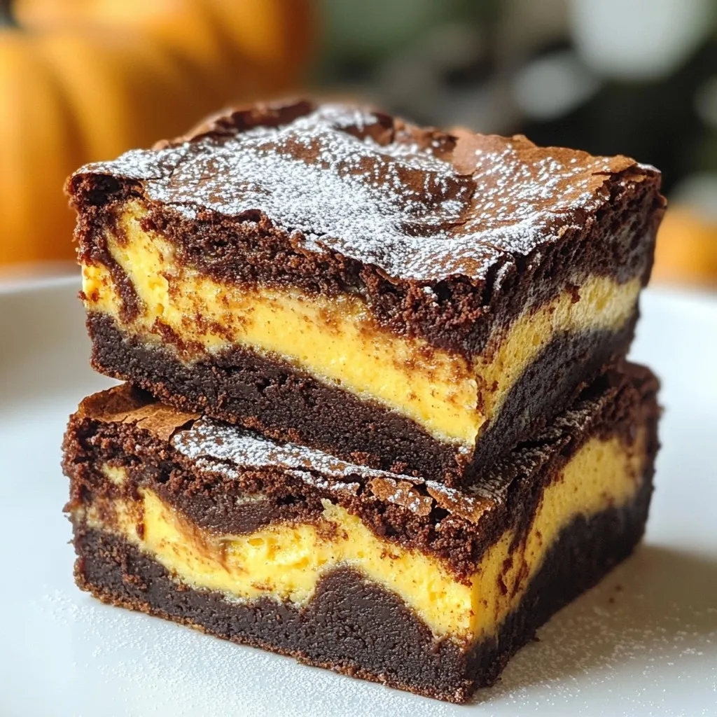Deliciously rich brownies swirled with a creamy pumpkin cheesecake layer, perfect for fall.