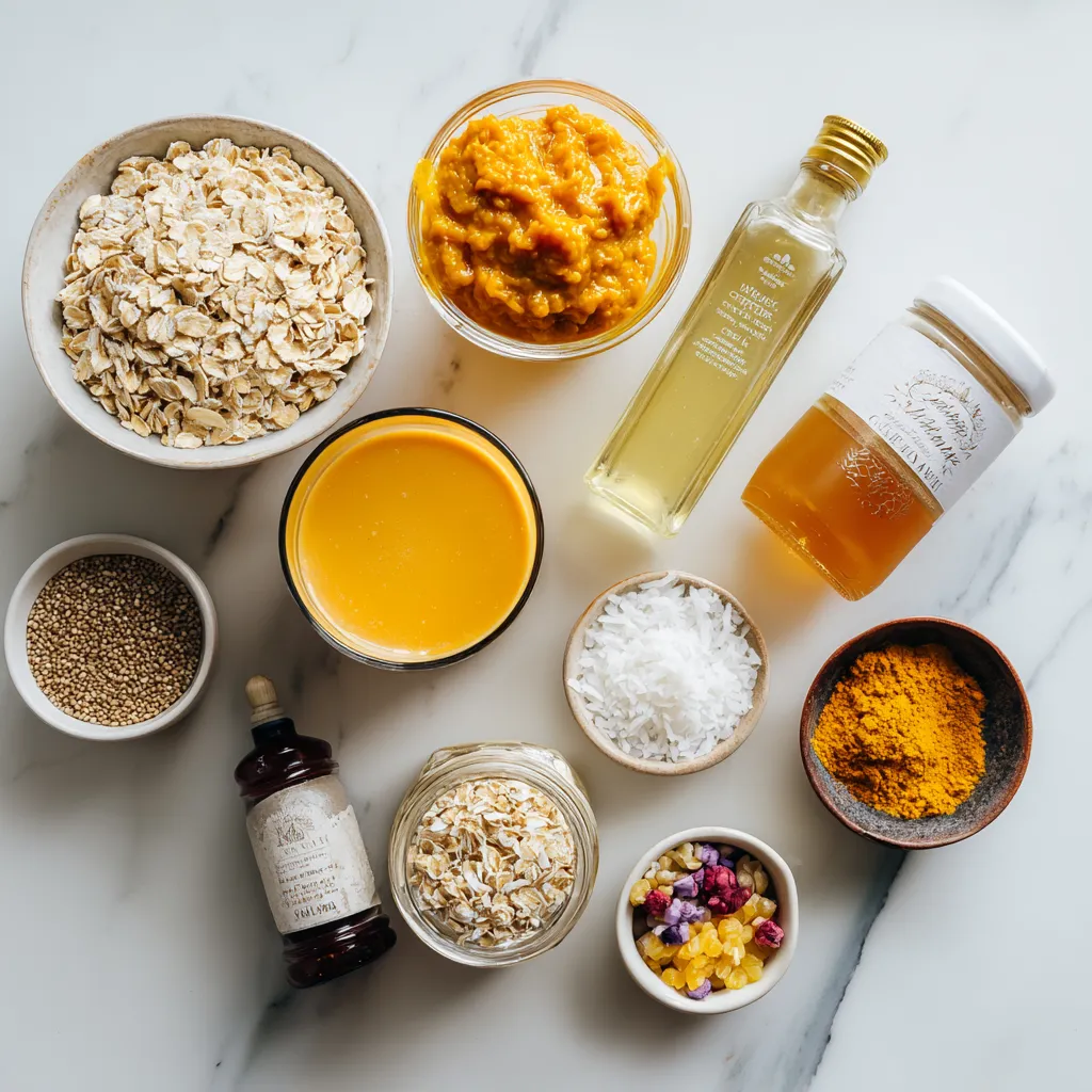 To make pumpkin spice overnight oats, gather these simple ingredients. Rolled oats form the base and provide fiber. Almond milk or any milk gives the mixture a creamy texture. Canned pumpkin puree adds richness and flavor. Chia seeds help thicken the oats while providing extra nutrients.