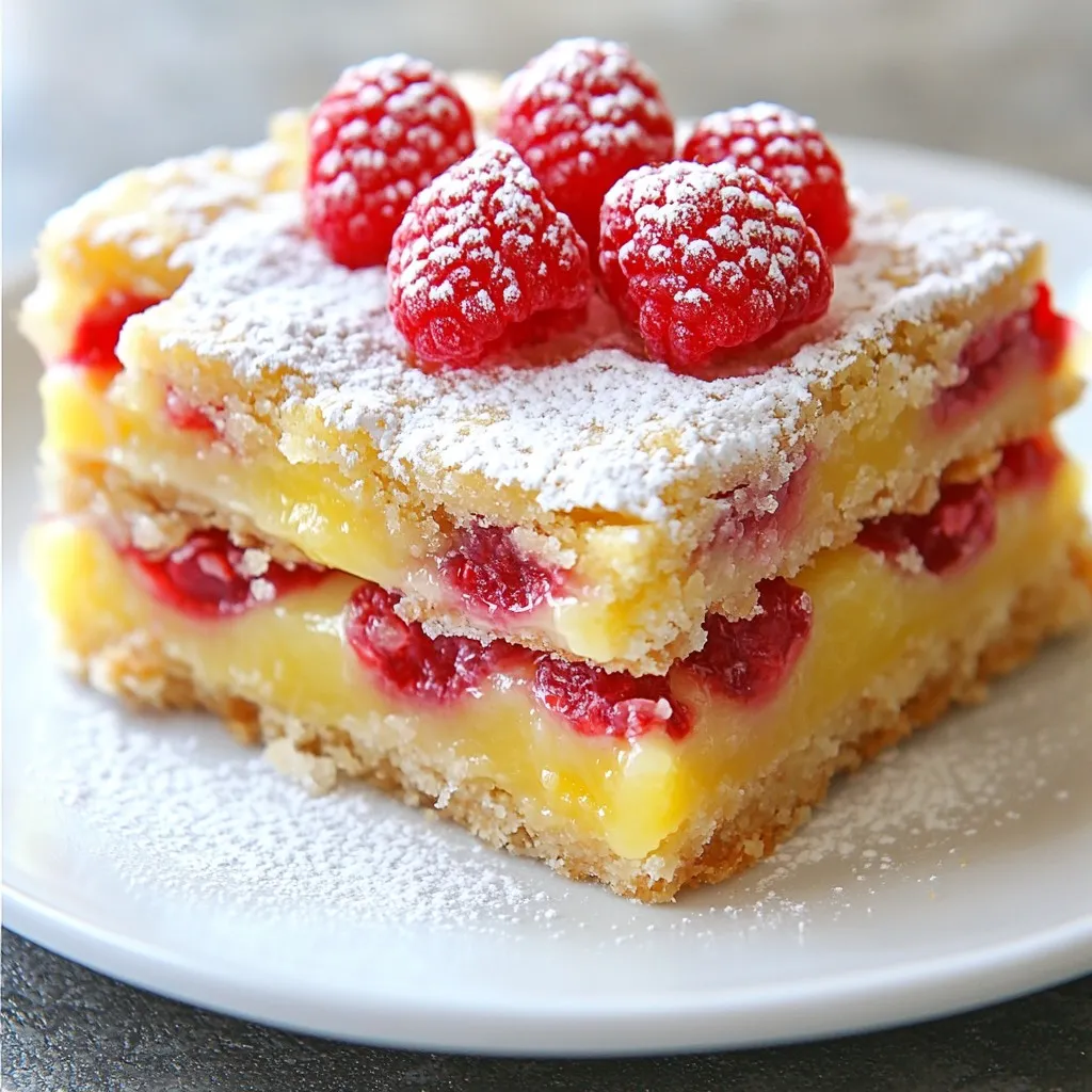 Delicious bars combining the tartness of lemon and the sweetness of raspberries, perfect for a refreshing dessert.