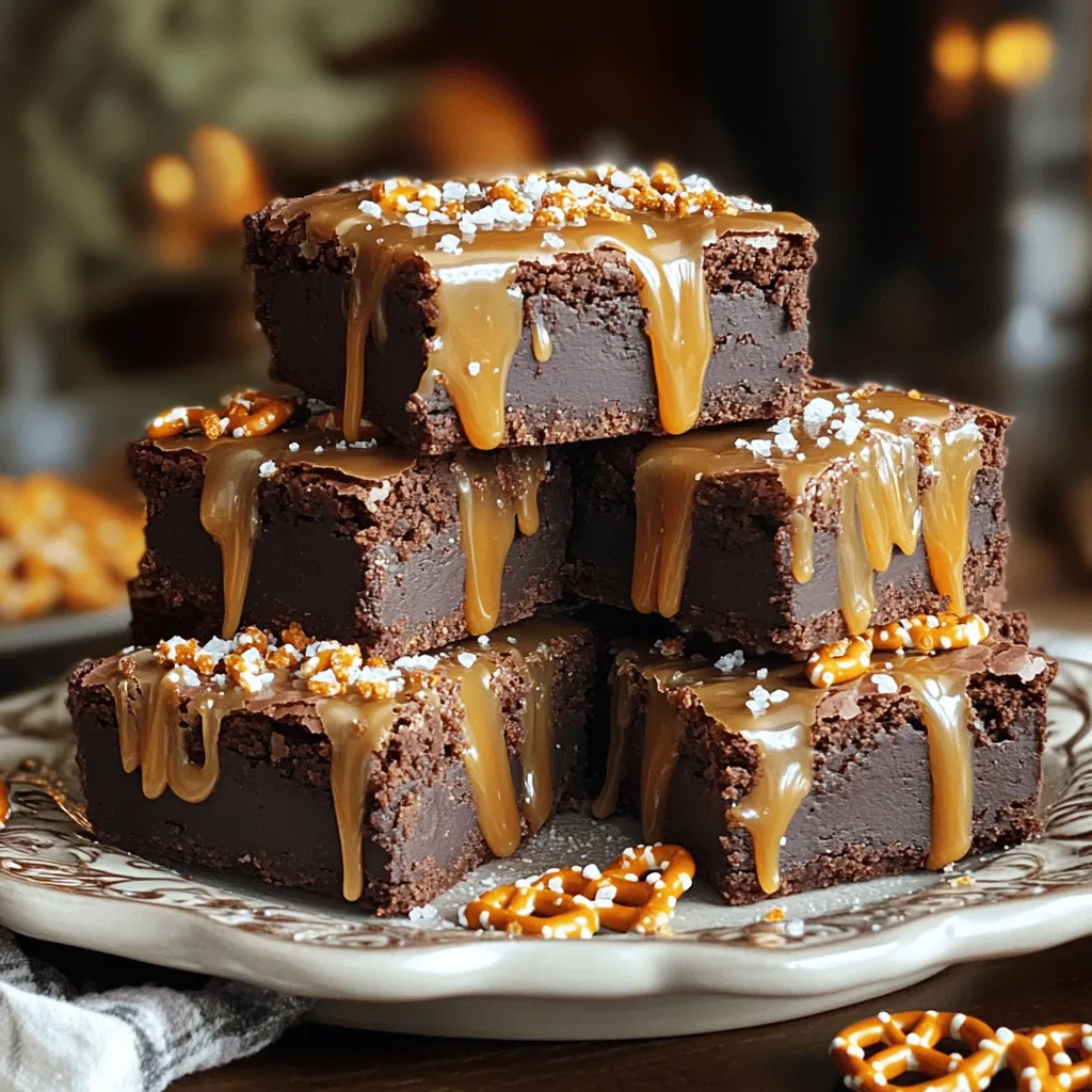 Flour and cocoa powder make the base. Baking powder helps the brownies puff up just right. Salt balances the sweetness. Chocolate chips add gooey pockets of chocolate. Pretzels give a fun crunch and salty kick. Finally, the salted caramel sauce ties it all together with a luscious, sweet note.