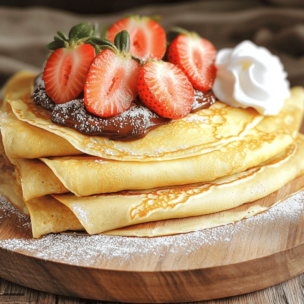 When making crepes, avoid using cold ingredients. Cold eggs and milk can lead to lumps. Always mix your dry and wet ingredients well. This helps create a smooth batter. If your crepes stick to the pan, you may need more butter. A well-greased pan is key for easy flipping. Lastly, do not rush the cooking time. Cook each crepe until golden brown for the best taste.