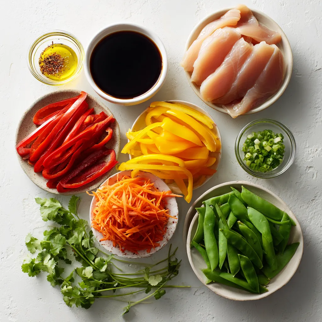 - 1 pound boneless, skinless chicken breasts, sliced into thin strips