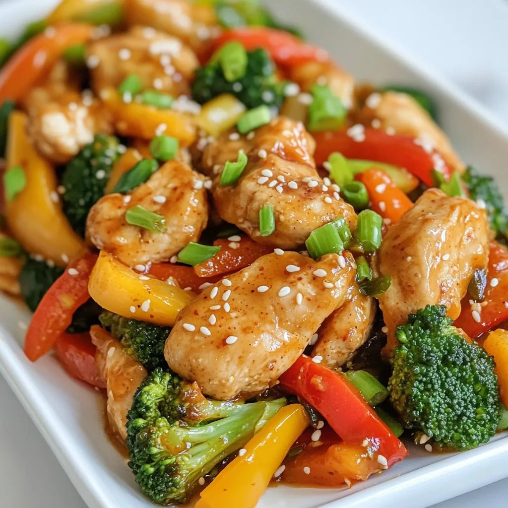 A flavorful stir-fry featuring tender chicken breast, vibrant vegetables, and a sweet chili sauce.
