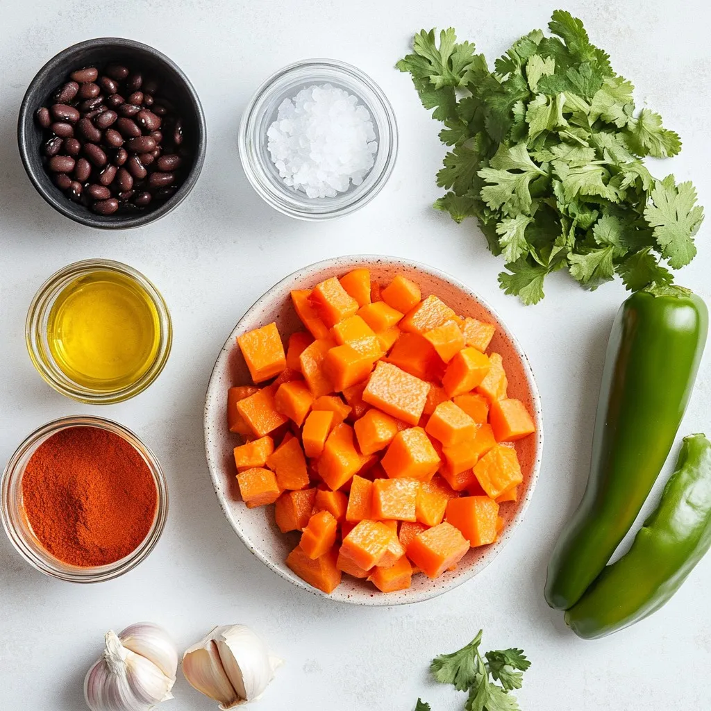 - 2 medium sweet potatoes, peeled and diced into ½-inch cubes - 1 can (15 oz) black beans, rinsed thoroughly under cold water and drained - 1 can (14.5 oz) diced tomatoes with green chilies, including juices - 1 cup vegetable broth - 1 medium onion, finely chopped - 3 cloves garlic, minced - 1 bell pepper (your choice of color), chopped into bite-sized pieces - 1 teaspoon ground cumin - 1 teaspoon smoked paprika - 1 teaspoon chili powder - ½ teaspoon cayenne pepper (or adjust to your spice preference) - Salt and black pepper, to taste - 2 tablespoons extra virgin olive oil - Fresh cilantro leaves, for garnish - Sour cream or a dairy-free alternative, for serving (optional) This chili is not just tasty; it is also healthy. A serving of this dish provides: - Calories: Approximately 250 - Protein: 10 grams - Fiber: 8 grams - Carbohydrates: 45 grams - Fat: 7 grams Sweet potatoes are rich in vitamins A and C. They help keep our skin healthy. Black beans offer a great source of protein and fiber. They help with digestion and keep you full longer. Tomatoes provide antioxidants, which can boost heart health. Garlic has anti-inflammatory properties. It may help fight colds and improve heart health. Each ingredient adds flavor and health benefits to this chili. Enjoying this dish is a delicious way to nourish your body! {{ingredient_image_2}} To make this chili, you will need: - A large pot or Dutch oven - A cutting board - A sharp knife - Measuring spoons - A wooden spoon 1. Heat the olive oil in your pot over medium heat. Wait for it to shimmer. 2. Add chopped onion and bell pepper. Sauté for 4-5 minutes until soft. 3. Mince the garlic and add it to the pot. Sauté for 1 minute until fragrant. 4. Stir in diced sweet potatoes. Mix them with the onions and peppers well. 5. Add cumin, smoked paprika, chili powder, and cayenne pepper. Stir to coat the sweet potatoes. 6. Pour in the diced tomatoes with juices and vegetable broth. Add rinsed black beans. 7. Bring the mixture to a gentle boil. Then reduce the heat to low and cover. 8. Let it simmer for 25-30 minutes. Stir occasionally until sweet potatoes are tender. 9. Taste the chili. Adjust seasoning with salt and pepper as needed. 10. Ladle the chili into bowls. Garnish with fresh cilantro and add sour cream if you like. - Make sure to chop your sweet potatoes into even cubes. This helps them cook evenly. - Taste the chili before serving to adjust spices. You can always add more heat! - Serve with tortilla chips or crusty bread for a nice crunch. - A squeeze of lime juice right before serving brightens all the flavors. To make this chili sing, use fresh spices. Ground cumin, smoked paprika, and chili powder are key. They add warmth and depth. Experiment with a pinch of cayenne for extra heat. Always taste as you go. You can adjust spices to your liking. If you want more flavor, add a splash of lime juice at the end. This brightens the dish nicely. You can easily make this chili your own. Try adding corn for sweetness. Chopped zucchini or carrots also work well. For a protein boost, add cooked quinoa or lentils. If you prefer meat, ground turkey or beef can replace the beans. Don't hesitate to swap black beans for pinto or kidney beans. The options are endless! Serve your chili hot in deep bowls. A sprinkle of fresh cilantro adds color and flavor. If you like, top with a dollop of sour cream or its alternative. For a crunch, pair it with tortilla chips or crusty bread. A squeeze of lime over the top enhances the taste. You can even set out toppings like shredded cheese or diced avocado for fun! Pro Tips Adjust the Spice Level: Feel free to modify the amount of cayenne pepper and chili powder according to your heat preference. Start with less, and you can always add more as it cooks! Make it Ahead: This chili tastes even better the next day! Prepare it in advance and let the flavors meld for a day in the fridge before serving. Vegetable Variations: Experiment with adding other vegetables like zucchini, corn, or spinach for extra nutrition and flavor. These can be added during the last 10 minutes of cooking. Storage Tips: Store leftover chili in an airtight container in the refrigerator for up to 5 days, or freeze for up to 3 months for a quick meal later. {{image_4}} You can easily make Sweet Potato Black Bean Chili vegetarian or vegan. The base of the chili is already vegetarian. Use vegetable broth to keep it vegan. For a creamier texture, add a dollop of vegan sour cream. This will give you that delightful finish without dairy. You may want to swap some ingredients based on your diet. If you need a gluten-free option, check that your broth is labeled gluten-free. You can also replace black beans with chickpeas for a different flavor. If you prefer a milder chili, leave out the cayenne pepper. This chili is perfect for making ahead. Cook it, let it cool, and store it in the fridge for up to three days. You can also freeze it for longer storage. Just put it in a freezer-safe container, and it will last for about three months. To reheat, just thaw it overnight in the fridge. Heat it on the stove until warm. Enjoy the same great taste later! To keep your sweet potato black bean chili fresh, store it in an airtight container. Make sure the chili cools to room temperature before sealing it. This helps prevent moisture build-up, which can spoil the chili. You can use glass or plastic containers; just ensure they are tightly closed. When you're ready to enjoy leftovers, reheat the chili on the stove or in the microwave. If using the stove, warm it over low heat. Stir it often to prevent sticking. In the microwave, heat it in short bursts, stirring in between until hot. Always check the temperature before serving. Your sweet potato black bean chili can last up to five days in the fridge. If you want to keep it longer, consider freezing it. Properly frozen chili can last up to three months. Just remember to label your containers with the date. Yes, you c