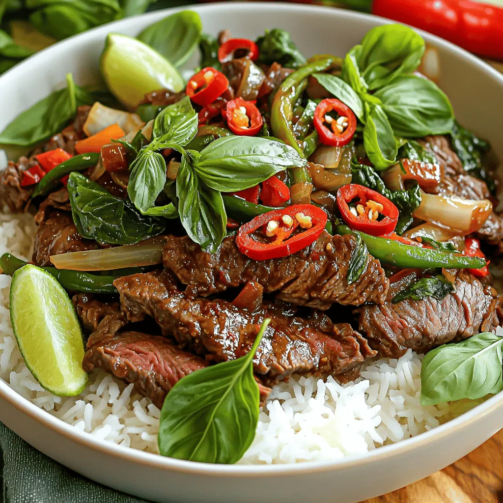 Thai basil beef stir-fry needs fresh and vibrant ingredients. The beef sirloin gives a tender bite, while the Thai basil adds a unique flavor. You will want to use high-quality soy sauce, oyster sauce, and fish sauce for the best taste. The garlic and chilies bring in aromatic warmth, and the bell pepper and onion add a nice crunch. Each ingredient plays a key role in this dish.