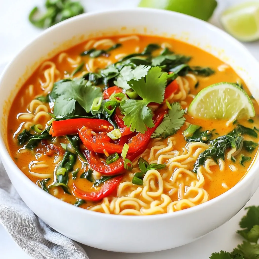 Serving is key to enjoying your dish. Use deep bowls to hold the broth and noodles. First, place the noodles in the bowl. Then, ladle the rich curry broth over them. Top with colorful veggies like bell peppers and spinach. Finish with fresh cilantro and sliced green onions. A lime wedge adds a fresh pop!