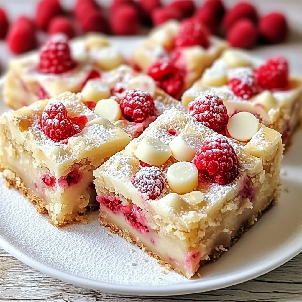 - 1 cup unsalted butter, melted - 1 cup packed brown sugar - 1/2 cup granulated sugar - 2 large eggs - 1 teaspoon pure vanilla extract The main ingredients are simple but crucial. The melted butter gives a rich base. The brown sugar adds moisture and depth. Granulated sugar provides sweetness. Eggs help bind everything together. Vanilla extract enhances the flavors. - 2 cups all-purpose flour - 1 teaspoon baking powder - 1/4 teaspoon fine sea salt The dry ingredients form the backbone of the blondies. All-purpose flour gives structure. Baking powder helps them rise. Sea salt balances the sweetness and enhances flavor. - 1 cup white chocolate chips - 1 cup fresh raspberries (or frozen raspberries) Add-ins elevate these blondies. White chocolate chips melt into creamy pockets. Fresh raspberries burst with tart flavor. You can use frozen raspberries, just thaw and drain them first. This mix of sweet and tart is what makes these blondies special. {{ingredient_image_2}} - Preheat the oven to 350°F (175°C). - Grease or line a 9x9-inch baking pan. Start by preheating your oven. This step makes sure your blondies bake evenly. Use a 9x9-inch pan. Greasing it helps the blondies come out easily. - Combine melted butter, brown sugar, and granulated sugar. - Incorporate eggs and vanilla extract. In a big bowl, mix melted butter, brown sugar, and granulated sugar. Whisk until it’s smooth. Then, add the eggs one by one. Stir in vanilla extract to boost flavor. - Sift together flour, baking powder, and salt. - Mix dry ingredients into wet ingredients cautiously. In another bowl, sift the flour, baking powder, and salt. Slowly add this dry mix to the wet mix. Be gentle when mixing. Overmixing can make the blondies tough. - Fold in white chocolate chips and raspberries. - Transfer batter to the prepared baking pan. Now, fold in white chocolate chips and fresh raspberries. Handle the raspberries with care. They should stay whole for juicy bites. Pour the batter into your pan and smooth the top. - Bake for 25-30 minutes. - Check for doneness with a toothpick. Place the pan in the oven. Bake for about 25 to 30 minutes. Use a toothpick to check for doneness. It should come out with a few moist crumbs. - Let cool in the pan for 15 minutes. - Transfer to a wire rack to slice into squares. After baking, cool the blondies in the pan for 15 minutes. Then, move them to a wire rack. This allows them to cool more before you slice them into squares. Enjoy the sweet and fruity flavor! To make the best blondies, avoid overmixing. Overmixing can lead to a tough texture. Mix just until you see no dry flour. For doneness, use a toothpick. Insert it in the center. If it comes out with moist crumbs, your blondies are ready. For a lovely finish, dust your blondies with powdered sugar. This adds a nice touch. You can also top each blondie with whole raspberries. This makes them look great and adds flavor. If you run out of butter, you can use coconut oil. It still keeps your blondies rich. For sugars, try using honey or maple syrup. They add a unique taste. You can also use frozen raspberries. Just thaw and drain them before adding. They work well and save time. Pro Tips Use Room Temperature Eggs: For the best incorporation, use eggs that are at room temperature. This helps them blend more smoothly into the batter, resulting in a more cohesive texture. Don’t Overmix: To ensure your blondies remain soft and chewy, mix the batter just until the dry ingredients are incorporated. Overmixing can lead to dense blondies. Choose Quality Chocolate: Opt for high-quality white chocolate chips for a richer flavor. The better the chocolate, the more decadent your blondies will taste. Cool Before Cutting: Allow the blondies to cool completely before slicing. This helps them set and makes it easier to achieve clean, even cuts. {{image_4}} You can change the taste of your blondies easily! Adding nuts or coconut flakes gives them a nice crunch. Try walnuts or pecans for a nutty twist. For coconut fans, sweetened flakes add a tropical vibe. You can also swap the white chocolate for dark or milk chocolate. Each type has its own unique taste and melts beautifully. If you need a gluten-free blondie, use almond or coconut flour. Both options work well to keep the texture light. For a vegan version, replace eggs with flaxseed meal or applesauce. Use dairy-free chocolate chips to keep it plant-based. These changes still keep your blondies delicious and satisfying. Change your blondies with the seasons! In summer, add blueberries or strawberries instead of raspberries. They taste fresh and vibrant. For the holidays, mix in spices like cinnamon or nutmeg. These spices add warmth and cheer to your treats. You can also try orange zest for a bright, citrus flavor. To keep your white chocolate raspberry blondies fresh, store them in an airtight container. This prevents moisture loss and keeps them soft. Glass or plastic containers work well for this. If you layer blondies, place parchment paper between them. This stops sticking. You can freeze blondies for later enjoyment. First, let them cool completely. Then, wrap each blondie tightly in plastic wrap. Place them in a freezer bag or an airtight container. Label it with the date. To thaw, move a blondie to the fridge overnight. For a warm treat, reheat it in the microwave for 10-15 seconds. At room temperature, these blondies last about 3-5 days. Keep them in a cool, dry spot away from sunlight. If they smell off or have mold, it's time to toss them. Look for a change in texture, too; if they feel dry or hard, they may be past their prime. You can tell when your blondies are done by checking their color and texture. They should be golden brown on top. When you insert a toothpick into the center, it should come out with a few moist crumbs. If it comes out clean, the blondies may be overbaked. Yes, you can use frozen raspberries. Just make sure to thaw and drain them first. This prevents excess moistur